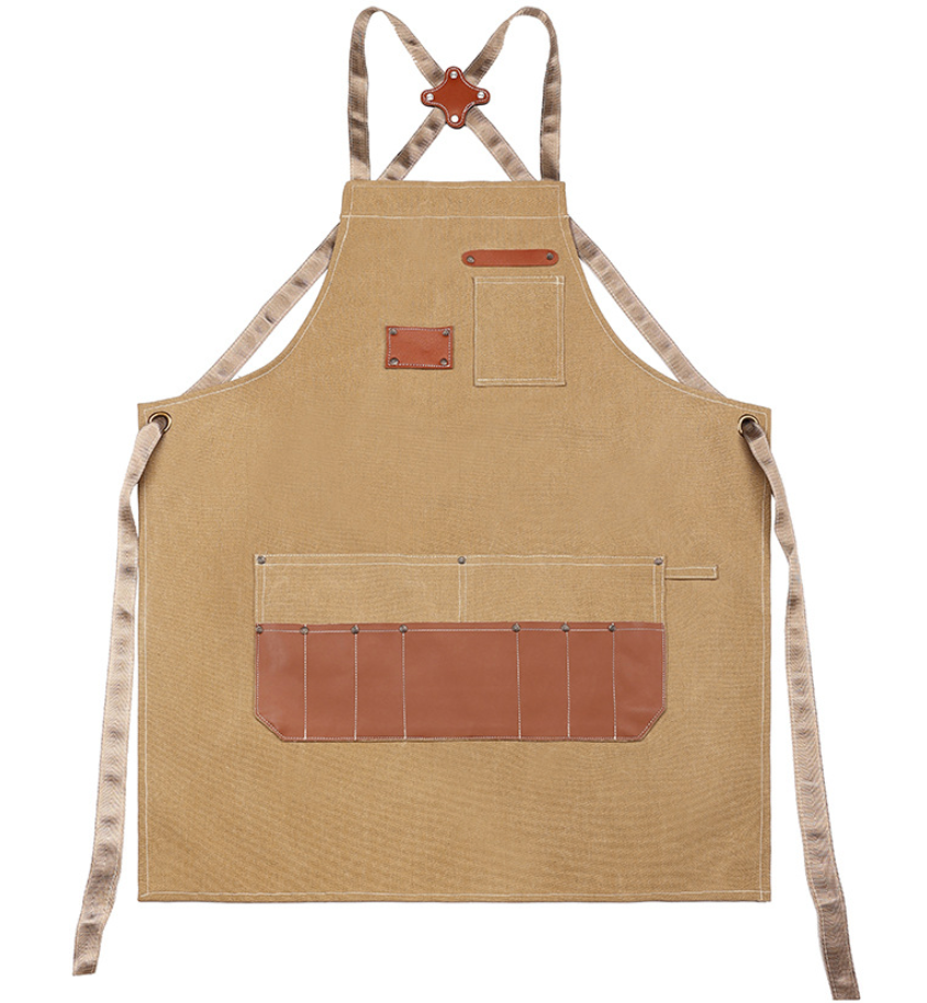 Cross Back Heavy-Duty Craftsman's Apron with faux leather Pockets and X-Back Straps